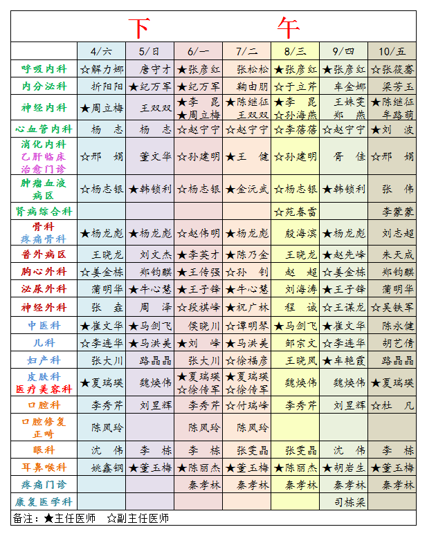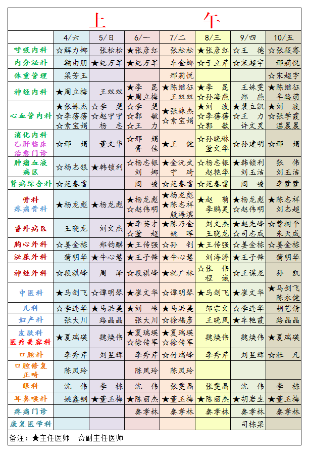 2026年4月4日—4月10日专家坐诊表