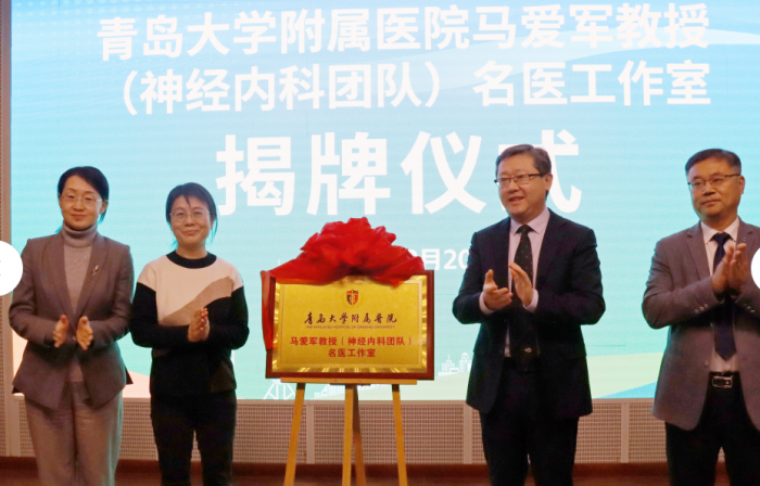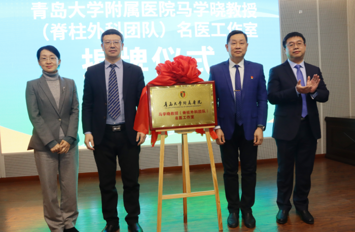 会议同时举行了“名医团队工作站”揭牌仪式。青岛大学附属医院与山东健康淄博医院相关领导为“青岛大学附属医院脊柱外科—马学晓(团队)工作站”、“青岛大学附属医院神经内科—马爱军(团队)工作站”揭牌。