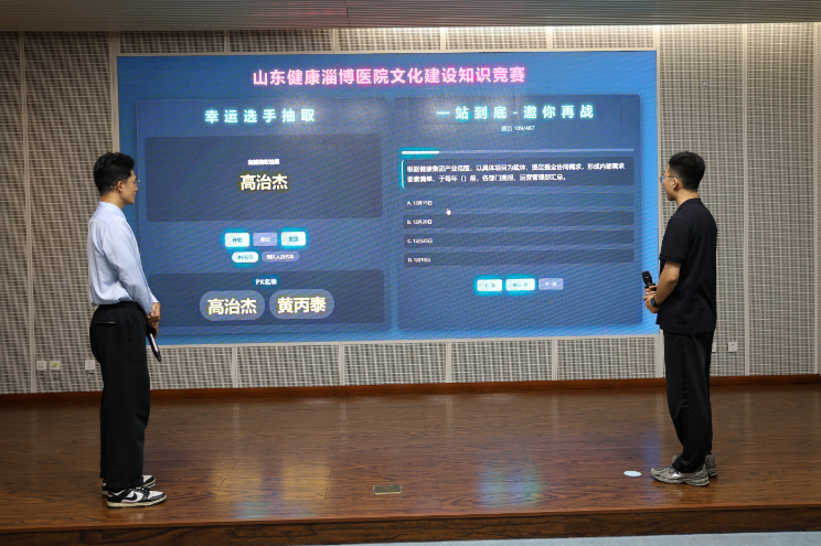 为深入贯彻《医院文化建设三年规划方案(2025-2027)》,全面提升职工对医院文化理念和规章制度的理解与认同,9月24日下午,山东健康淄博医院在住院三部学术报告厅举办“一站到底·邀你再战”医院文化建设知识竞赛。院领导班子成员、各部门负责人及全院职工代表共同参与了这场文化盛会。