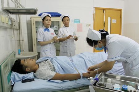 本站讯 在全员大练兵活动中,我院护理部高度重视临床护士的实际操作能力,将考场从培训中心转移到病房,加大了床边考核力度,全面考核护士的病情观察能力、应变处理能力和护患沟通能力,进一步提升护士的综合素质。图为骨科一病区护士李萍进行静脉输液床边考核。(刘小芸)
