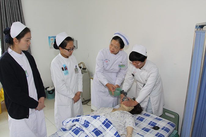 本站讯 近日,我院护理部提出了全员考核全员达标的考核要求,对14项技能操作按护士层级分类考核。各科室护士长积极参与到练兵队伍中,以带动科室人员积极备战,顺利过关。图为11月14日,外科总护士长、骨科护士长徐桂花与科室人员一同练习“简易呼吸器”操作流程。(刘小芸 摄)