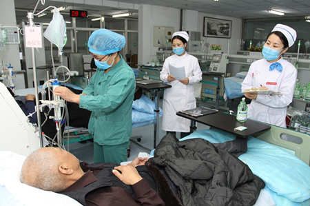 近日,我院护理部对ICU、透析室、急诊科、手术室四个科室的专科护士进行了准入考核。本年度该院“特岗”准入人员共16名,需经过3至6个月的专业培训,考核合格后才能于相应科室“上岗”。图为12月10日,护理部对透析室1名准入护士进行现场考核。(张芹 刘小芸)