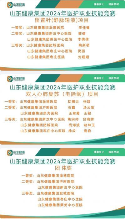 经过理论知识竞赛和操作技能竞赛的激烈角逐,8位评委评委们秉承公平、公正的原则,按照操作标准进行综合评分,评选出心肺复苏(电除颤)及静脉留置针两项个人技能一等奖1名、二等奖2名、三等奖3名,团体技能一等奖1个、二等奖2个、三等奖3个。山东健康淄博医院分别获得留置针(静脉输液)项目、双人心肺复苏(电除颤)项目2个单项一等奖和团体一等奖。