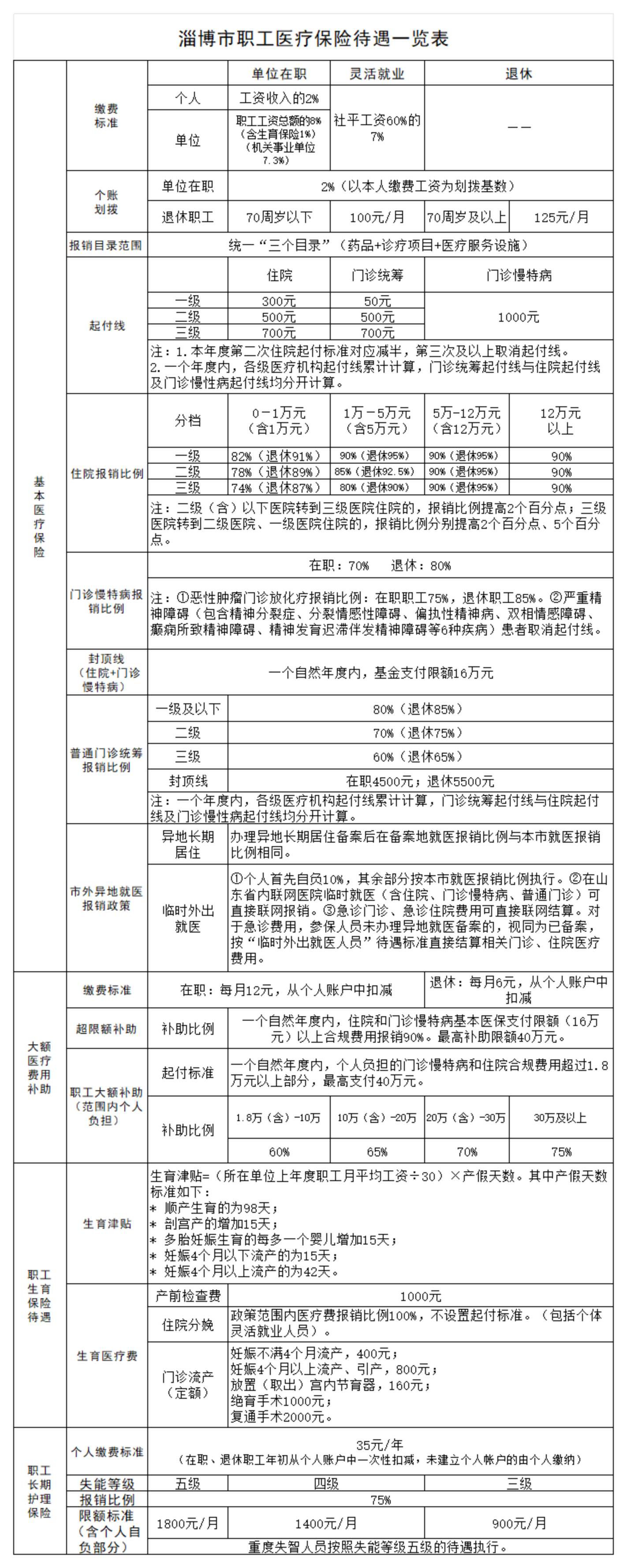淄博市职工医疗保险待遇一览表