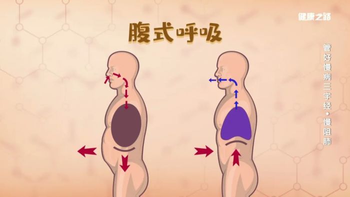 吸气的时候鼓肚子,呼气的时候瘪肚子,腹式呼吸可以和缩唇呼吸同时进行。