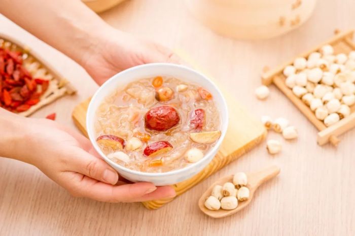 饮食要清淡,注意滋阴润肺。秋末冬初,可以适当吃一些具有滋阴作用的食药物质,如黑芝麻、莲子、百合、芡实、薏米等,以健脾胃。不吃温热、温燥食物,少吃辛辣、煎炸、油腻的食物,食谱推荐银耳雪梨汤、莲藕炖排骨、百合莲子老鸭炖汤等。