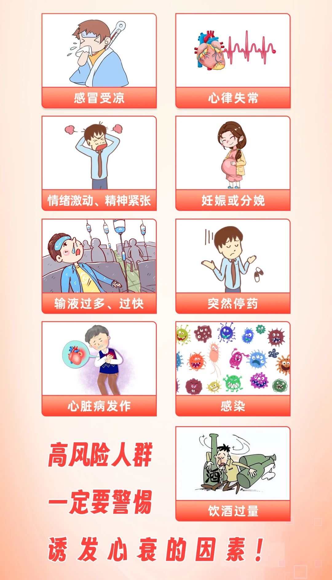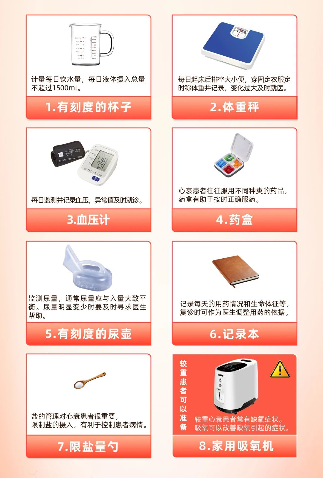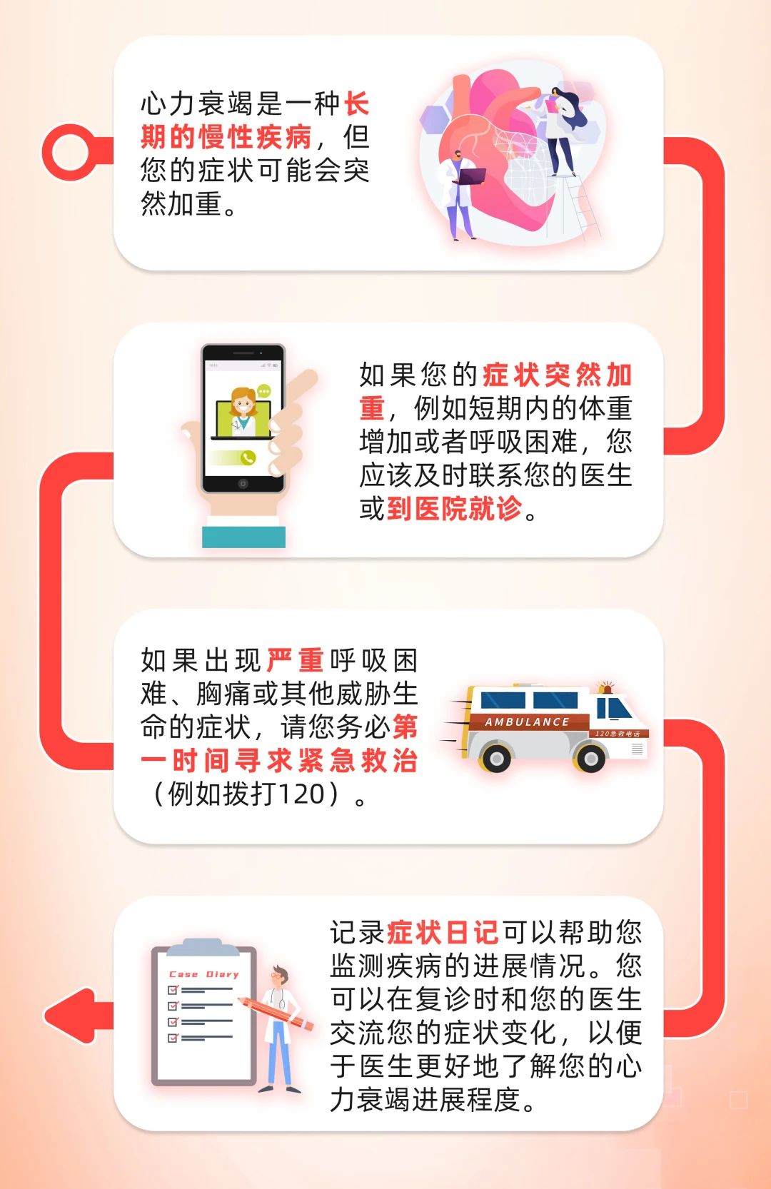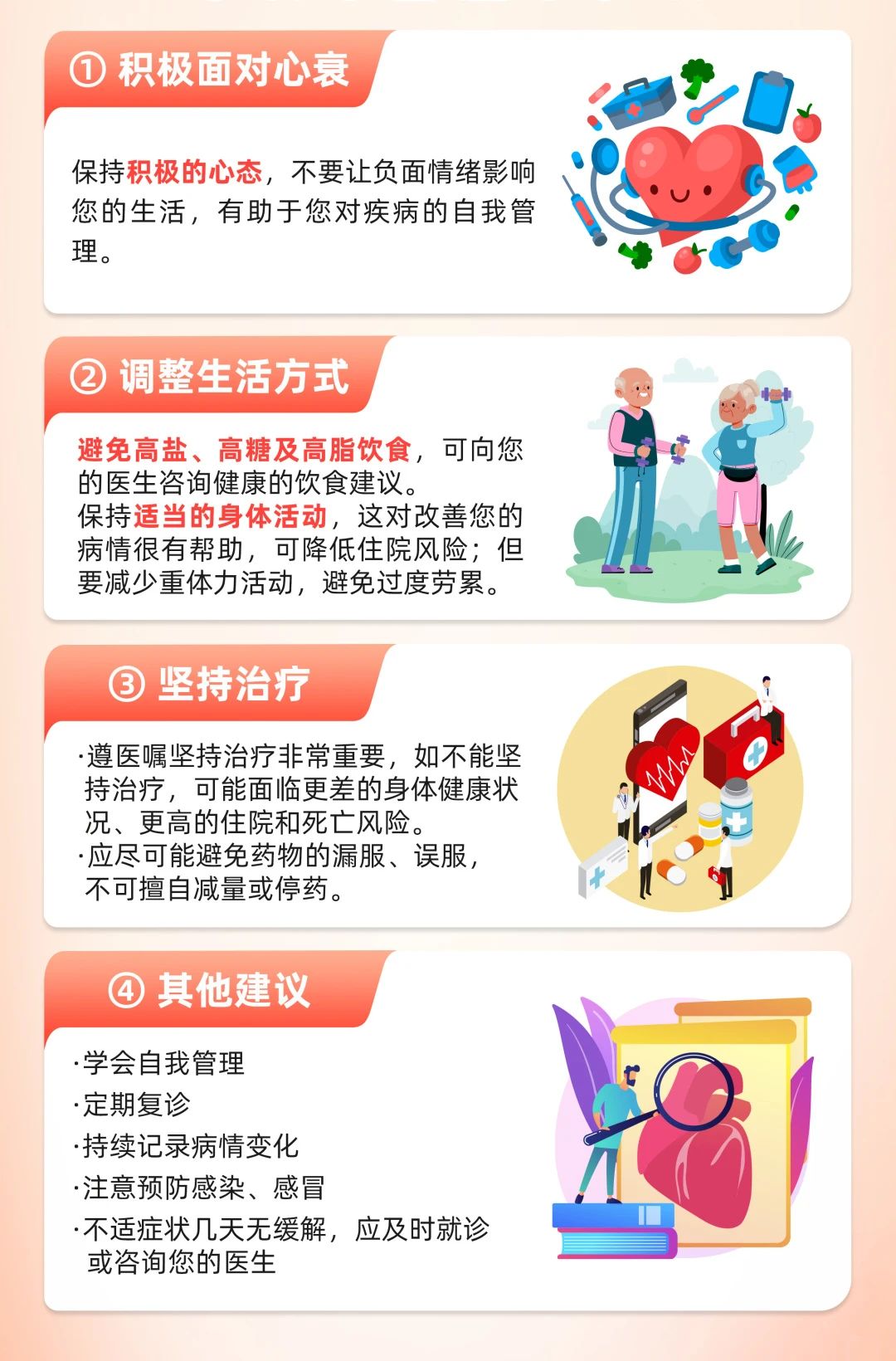 温馨提醒: 心衰患者要做好个人管理,包括坚持服药、改善生活习惯、定期复诊、避免可能加重心衰的因素等。如出现短期内体重增加,水肿、呼吸困难、乏力等症状,一定要尽早就诊,不可延误病情,以免引起更加严重的后果。