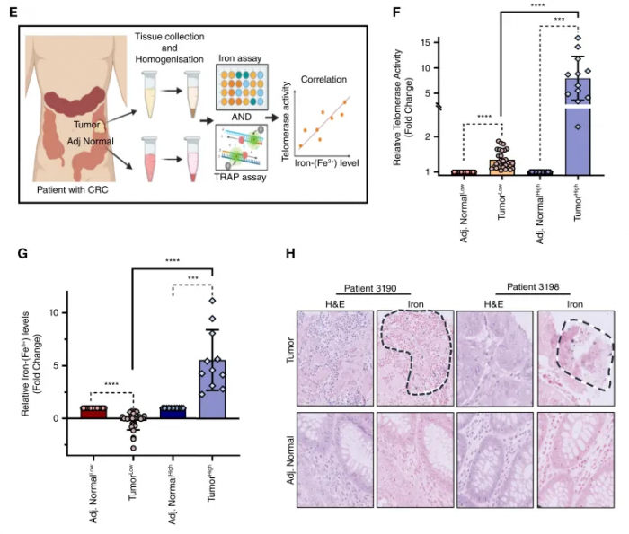 研究使用了结直肠癌患者的样本发现,细胞铁感应蛋白Pirin会与红肉中的铁相互作用,以铁依赖的方式重新激活端粒酶,解锁了癌症的限制,从而诱导癌症发展。