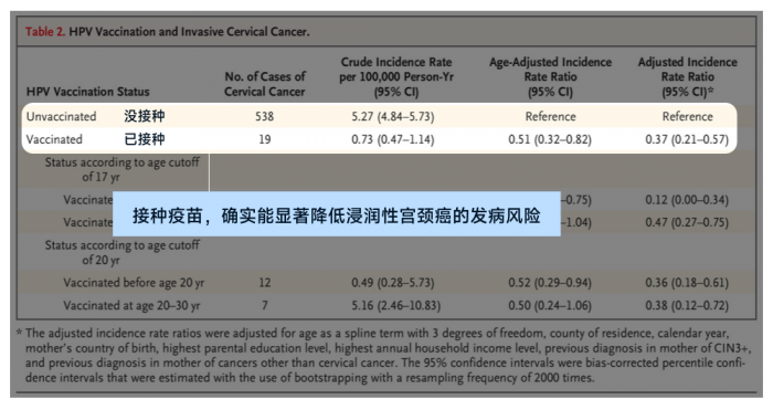 《新英格兰医学杂志》花了11年时间,追踪了超过160万名打了四价的女性。????没打疫苗:每10万人里有 94 人得宫颈癌。????而打了疫苗呢?宫颈癌的累积发病只有 47 例。
