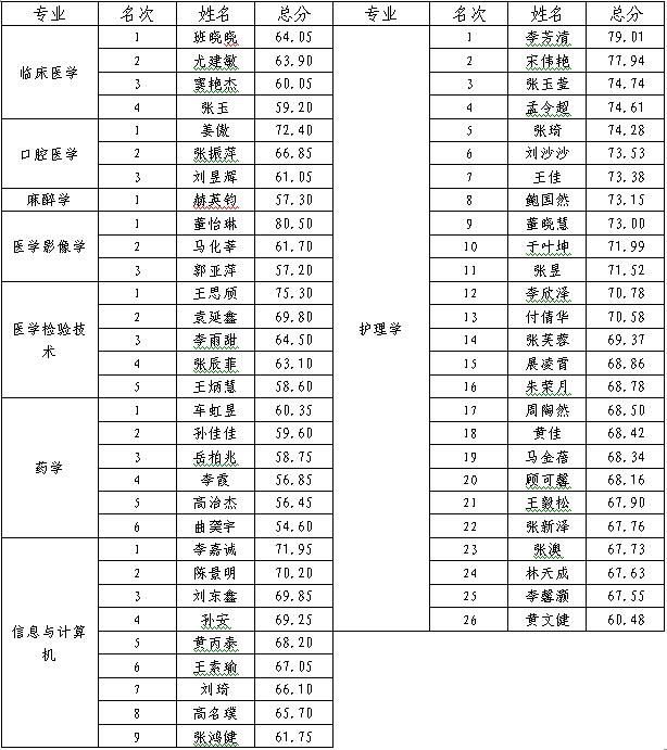 录取工作将随之开始,各专业按照上级批复的计划数根据考试成绩进行录用。护理专业录取前15名。