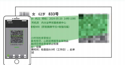 3. 门诊患者如需纸质报告,请到影像科自助报告机扫描检查凭条上的二维码自助打印;