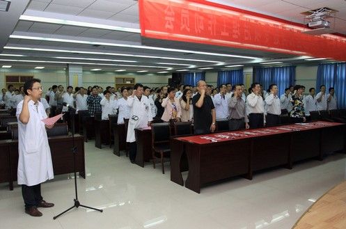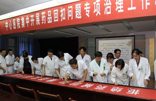 动员会后,全体与会人员在院班子带领下,集体举行了廉洁行医宣誓仪式,并依次在“拒收药品回扣、廉洁文明行医”横幅上进行签名。