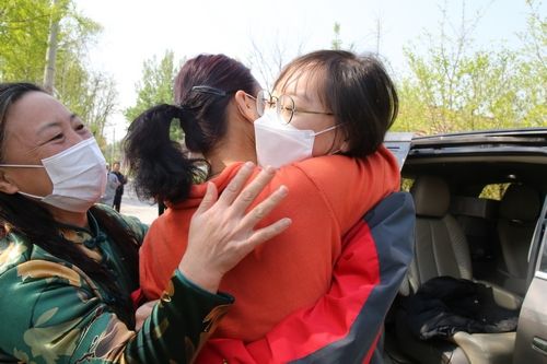 4月15日上午,山东能源淄矿集团中心医院重症医学科护师王欣回到离别3个多月的青州家中,在下车的一刻,母女紧紧拥抱在一起,王欣的母亲满含激动的泪水:“我的小棉袄终于回来了!”