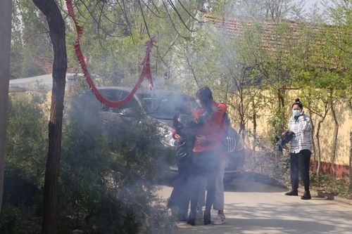 在院子大门的两边,王欣的姨夫与姨妈点燃了早已准备好的鞭炮,他们用农家人最高的礼遇迎接家中的“小英雄”凯旋回家,街道办事处与村负责人也前来看望慰问这位90后勇敢的“美小护”。