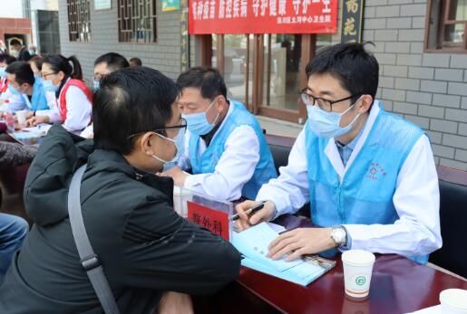4月27日,在院党委委员、副院长孙海涛带领下,一行12名医疗专家前往我院“名医基层工作站”驻地太河镇卫生院,于集市上为当地百姓免费进行测量血压、检测血糖、心电图、诊疗查体、健康咨询等义诊服务,使百姓不出远门,不挂号,家门口就能看上“专家号”。这是我院在学党史中“我为群众办实事”实践活动之一,我院将学党史与实际工作紧密结合,通过“呵护幼儿”、“情暖敬老院”、身边的专家讲堂、社区山村义诊等方式把健康“送”到百姓身边,用实际行动喜迎建党100周年。(刘小芸)