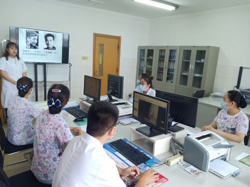 为扎实推进党史学习教育和激发党员立足岗位担当作为,近日,我院组建了一支年轻的党史学习教育宣讲员志愿队,以“党史故事听我讲”微宣讲的形式走进科室、走进支部,用一个个感人的红色故事,引导党员干部和广大群众知党史、感党恩、跟党走,坚定理想信念,不忘行医初心,用实际行动为建党100周年增光添彩。图为6月29日,宣讲志愿者王一阁于血液内科讲述邓稼先的故事。(刘小芸)