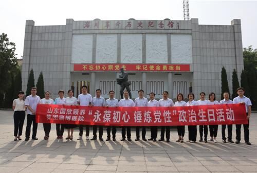 6月30日,淄博医院党委在淄川革命历史纪念馆前举行新党员入党宣誓仪式,缅怀革命先烈,传承红色基因。医院党委书记、院长翟振龙,党委副书记、纪委书记王军及新党员、各支部书记共18人参加了仪式。宣誓仪式现场,翟振龙首先进行致辞,祝贺新党员加入党组织,宣读了2021年上半年预备党员名单,大家一起在领誓人的带领下,面向党旗,举起右拳,发出了为共产主义奋斗终身的铮铮誓言。新党员们表示,将深入学习党史,传承烈士遗志,牢记入党誓词,不忘肩负的神圣使命,发挥党员的先锋模范作用。