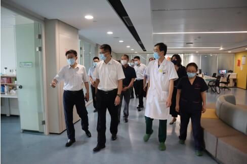 李会战一行在我院实地调研,查看内镜中心、重症医学科、呼吸与危重症医学科、中医科等科室,对院区和门诊的规划建设等情况进行现场视察并督导。