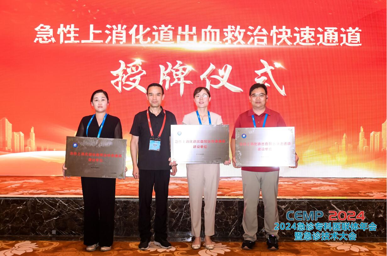 9月6日,从2024年急诊专科医联体年会暨急诊技术大会传来喜讯,我院顺利通过了“急性上消化道出血急诊救治快速通道项目”现场评审,获得“急性上消化道出血救治快速通道建设单位”授牌,成为全国第六批该专业的达标医院,标志着我院在急性上消化道出血的救治水平和救治能力达到国家级规范标准水平。