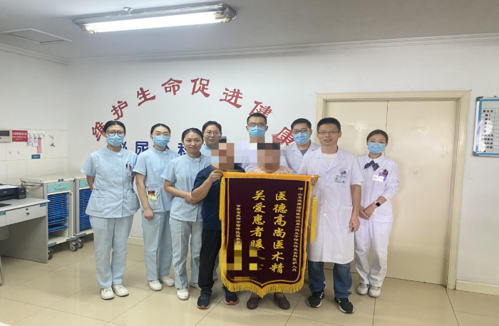 因患者肺功能差、血压不稳定,术后多学科联合会诊全力做好围手术期治疗,最终患者胸闷、憋喘症状明显缓解,双下肢水肿消失,术后第四天可自行下楼进餐。出院之际,患者及家属特送锦旗以示感谢。