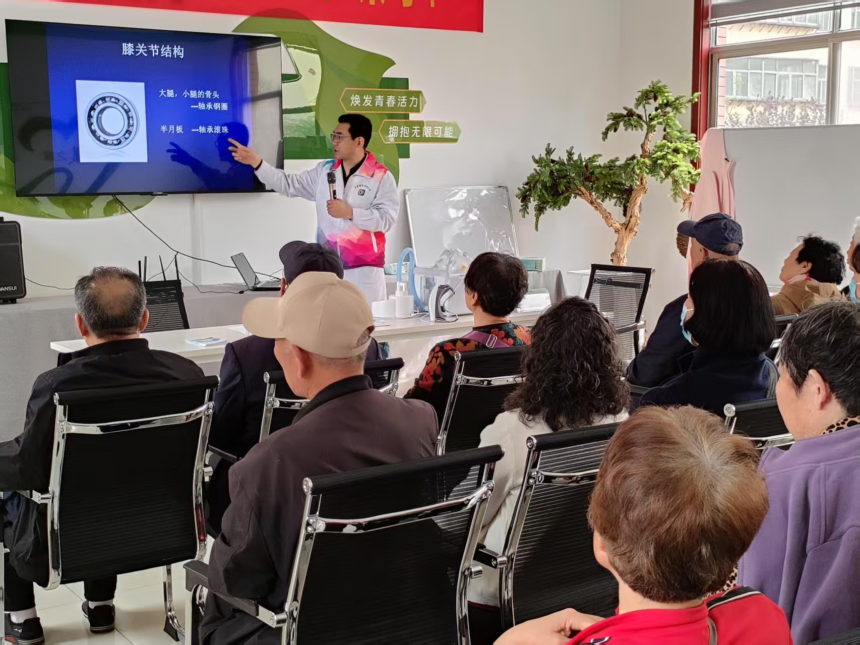 4月8日,我院骨关节外科联合康复医学科、眼科团队走进般阳社区和美康养服务中心,开展以"关注膝关节健康"和"爱护眼睛,保护视力"为主题的科普讲座及义诊活动,旨在提升中老年群体对常见疾病的认知水平,推广科学防治理念。
