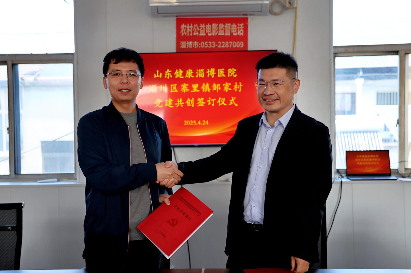 为深化党建引领基层治理,推动优质医疗资源下沉乡村,4月24日上午,我院与淄川区寨里镇邹家村党建共建签约仪式在邹家村举行。双方将围绕健康帮扶、惠民服务等领域深化合作,同时医院组织多学科医护团队走进邹家村开展“我为群众办实事”主题党日义诊活动,为村民送去暖心健康服务。