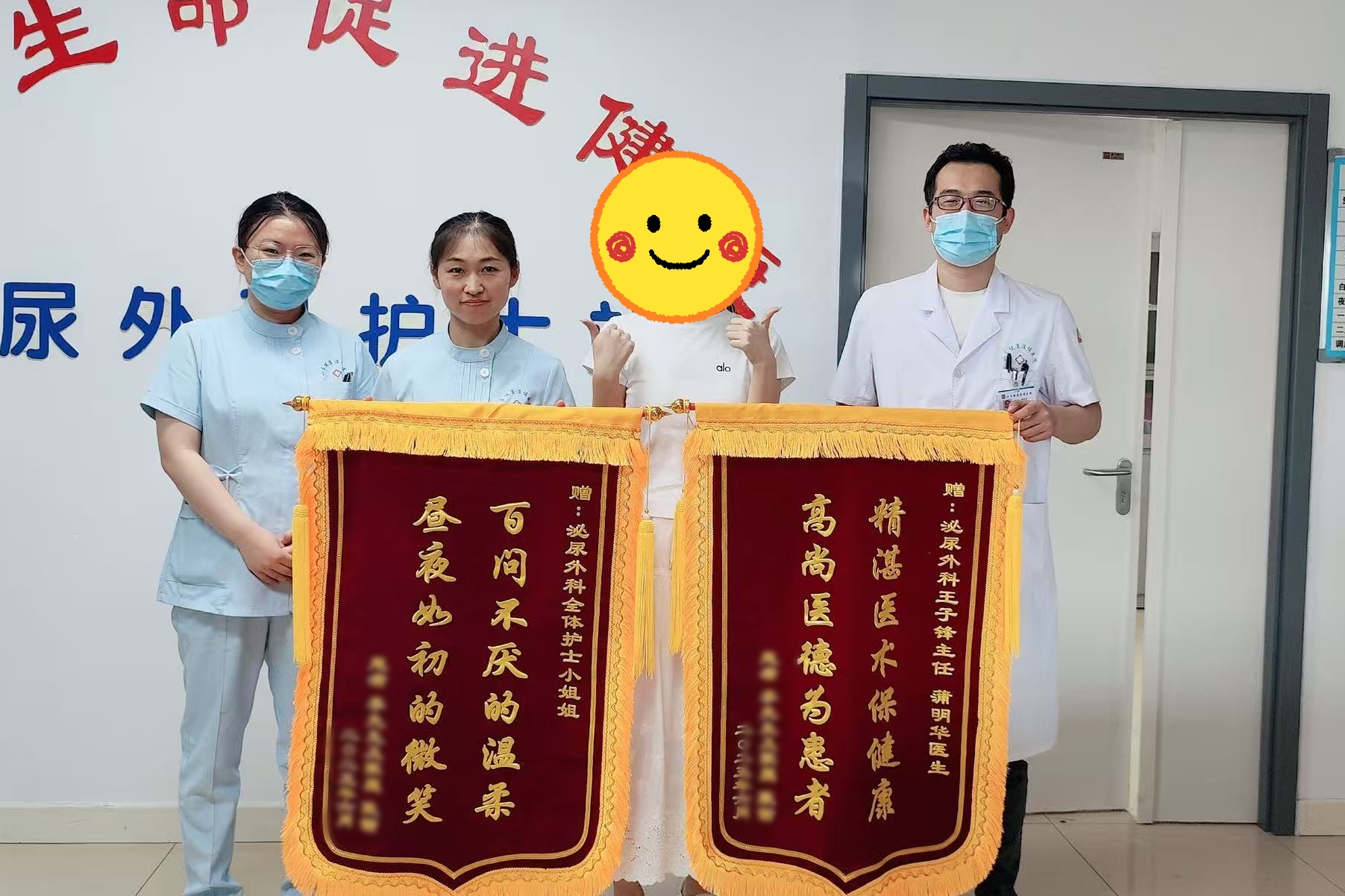 在护理团队的精心照护下,患者术后康复过程平稳顺利,不适感轻微,恢复远超预期。困扰已久的肾积水问题得以彻底解决,患者为表示感谢,分别向泌尿外科医疗团队和护理团队送上锦旗。