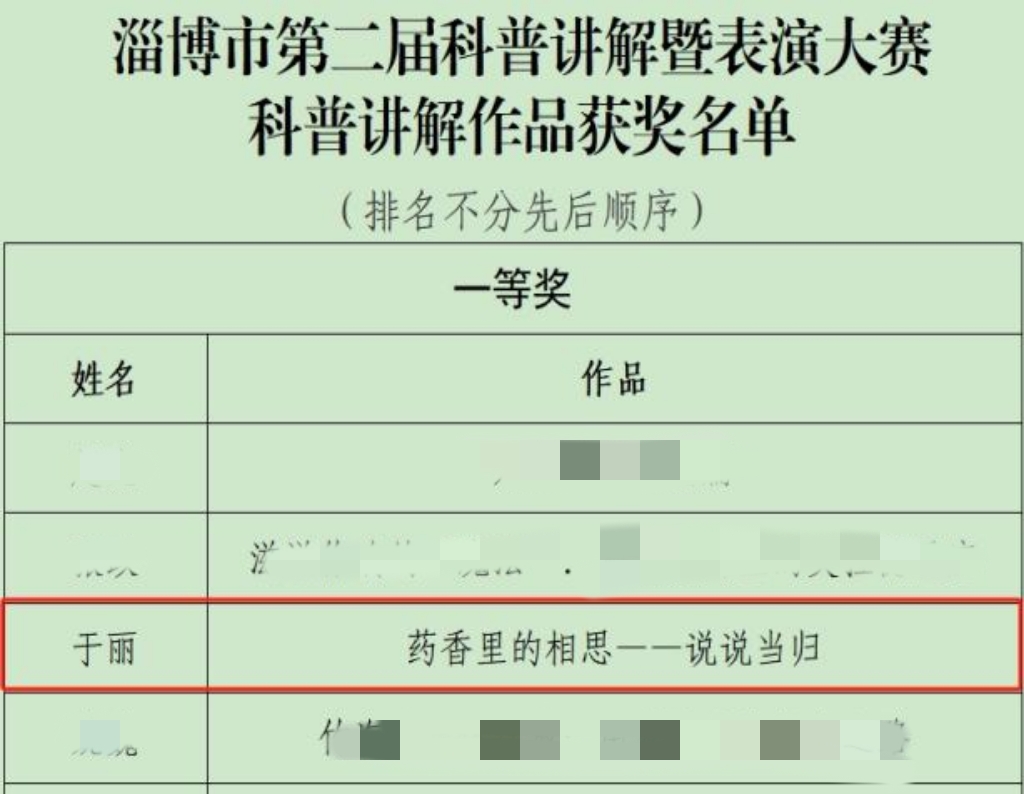 在决赛中,我院药学部科普表演作品《变身失灵的小英雄》、肝胆胃肠外科作品《胆囊法庭:结石大审判》以及药学部于丽的讲解作品《药香里的相思——说说当归》均荣获一等奖;消化内科李晓景的作品《胃内的不速之客——胃结石》获得三等奖。值得一提的是,在前期区县初赛阶段,淄川区共推选3部科学表演作品和6部科普讲解作品晋级市级决赛,其中我院独占2部表演作品和2部讲解作品,全部成功入围,体现出该院在区域科普工作中的领先水平和深厚积累。