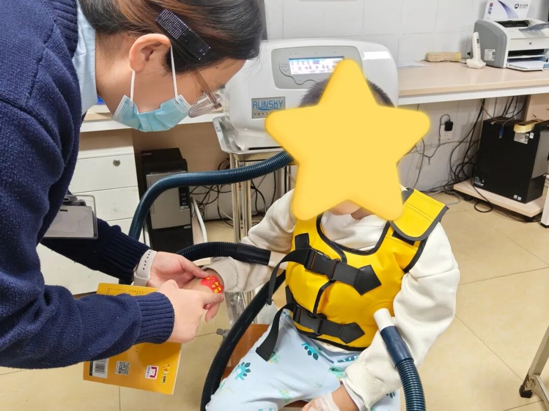 刘婷婷主管护师现场讲解了机械排痰的作用,它能通过温和的振动帮助患儿排出呼吸道痰液,缓解不适,尤其对反复咳嗽、痰多的小患者十分友好。为了让家长和孩子直观了解,她邀请小患儿试做治疗,孩子穿着排痰背心,在医护人员的温柔引导下,顺利完成体验,家长们也纷纷点赞这一“温柔疗法”。座谈会上,护士长还为患儿们送上精心准备的小礼物,可爱的贴纸让孩子们露出了纯真的笑容。